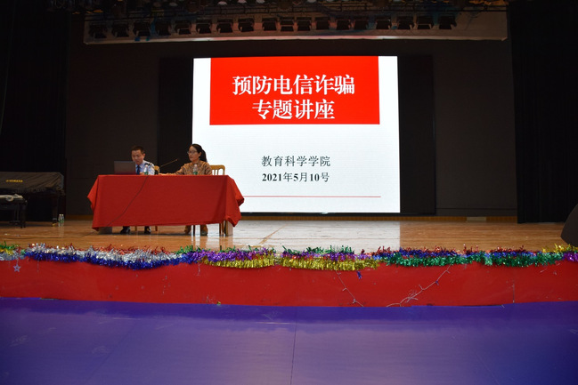 为帮助教科学子有效辨别和应对电信诈骗行为,提高该院学子的防范意识,谈球吧于5月10日在老员工活动中心举办“预防电信诈骗专题讲座”。本次活动特邀燕子矶派出所副所长王翰平警官担任主讲,该院学工办副主任李国敏老师担任主持。该院部分教职工出席讲座,全院同学积极参与。