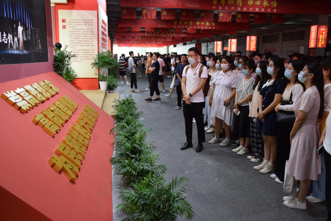 为庆祝中国共产党成立100周年,回顾中国共产党百年奋斗的光辉历程,展望中华民族伟大复兴的光明前景,7月3日下午,谈球吧辅导员李维翔老师带领全体员工党员、入党积极分子参观学习“百年征程 初心永恒”中国共产党在江苏历史展。