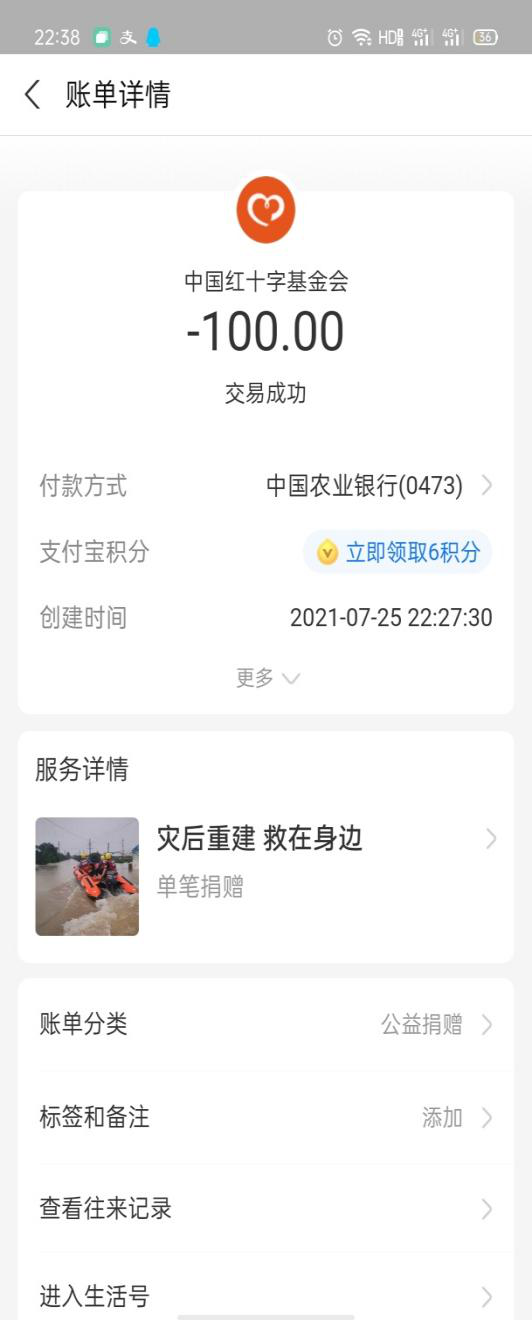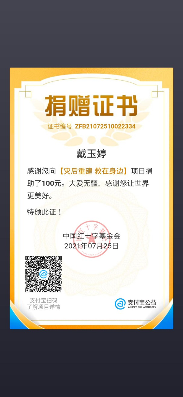 看到河南的洪灾,远在江苏镇江的19级员工戴玉婷坐立难安,心系灾民,遗憾自己不能到一线去支援,得知河南的情况越发危急,有7名党员牺牲前线,她毫不犹豫的预支了暑期兼职工资向中国红十字基金会捐款了100元,用于河南灾后重建项目。戴玉婷从小生活在单亲家庭,跟随父亲生活,父亲身体不好丧失劳动力无法工作,她小小年纪就是家里唯一的经济来源,平时利用课余时间和寒暑假时间赚取生活费,勉强维持生计。可正如她所讲的:我只希望这100块钱能让刚刚失去家园的人吃上一顿热腾腾的饭,能够让可怜无助的动物有个小家。同时身为一名积极入党分子,我应当谨记为人民服务的党的宗旨,用实际行动发挥党的先锋模范作用。