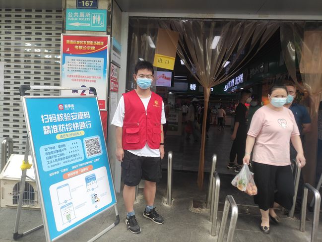 在本次志愿活动中,赵乾龙同学志愿参加了农贸市场的进出口扫码志愿服务。在农贸市场的志愿服务中会遇到很多不会使用手机的爷爷奶奶,他们对每天进入市场例行检查环节表现出不耐烦的样子,赵同学会耐心的向他们解释例行检查对疫情防控的重要性,并主动服务有困难的老人,帮助他们申领安康码,呼吁他们积极配合市场疫情防控工作。赵乾龙同学表示:“农贸市场每天的人流量都很大,在入口处严把进入的人员,这不仅是对疫情防控的负责,更是对每一个进入市场人员的负责。”