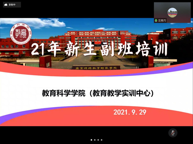 2021级新生即将线下报到,为更加热情、周到、有序、高效做好迎新工作,谈球吧于9月29日晚召开了“21级副班培训”线上会议,本次会议由汪亮巧老师主持,新生辅导员余宛琳老师以及21级各副班积极参加。