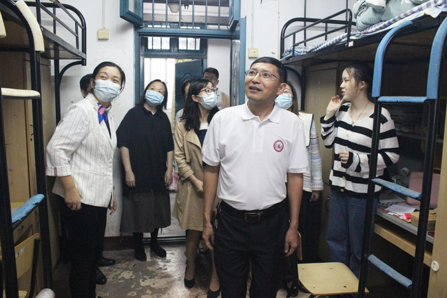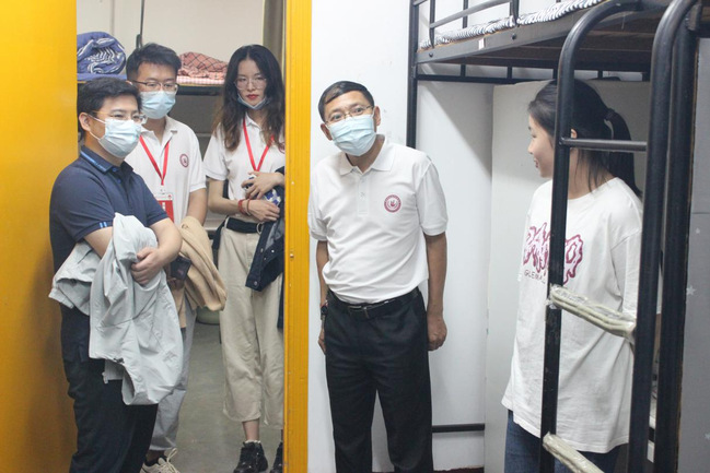 为深入了解新生住宿情况,关心新生学习与生活,进一步落实迎新工作,10月13日下午,公司党总支书记吴月华、经理刘新学,党总支副书记吴兴、副经理徐莉、张丽莉和学工团队共同前往新生宿舍,走访看望21级新生。