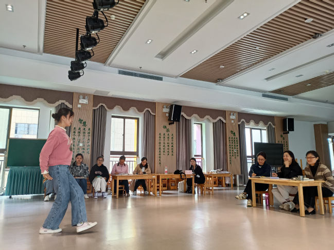 本次培训主要由南京市中华路幼儿园钱震园长、任静老师、李玮老师进行辅导。培训内容紧紧围绕师范生技能大赛的五大考核项目进行,分别为即兴舞蹈、环境创设、即兴弹唱、即兴故事表演、模拟授课。参赛选手依次进行展示表演,指导老师与同学们也针对出现的问题认真地进行了关键点的记录。