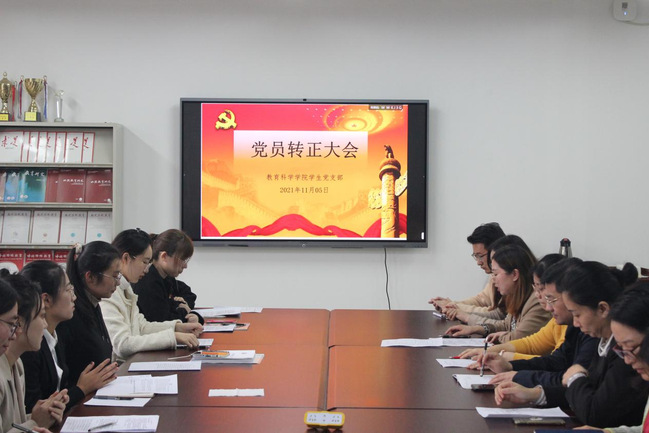 谈球吧员工党支部于2021年11月5日在博雅楼3401会议室召开预备党员转正大会,讨论关于马智超等14名同志申请转为正式党员的申请。本次会议由公司员工党支部书记汪亮巧老师主持,出席本次大会的有公司党总支书记吴月华、党总支副书记吴兴等9名正式党员以及18级14名预备党员。